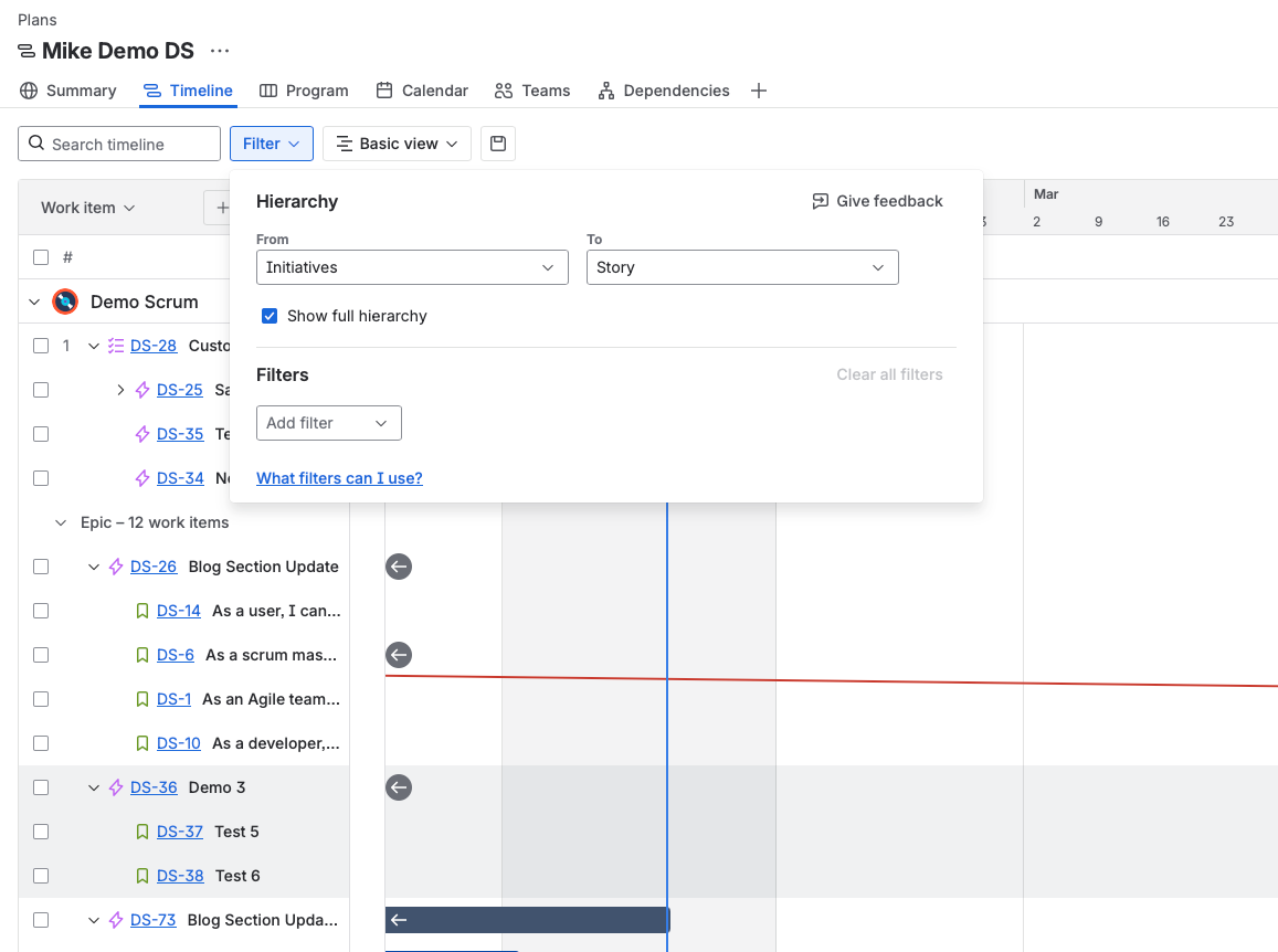 But here's the problem: without Premium's Plans feature, you can't visualize the parent-child relationships. Your Initiative becomes just another ticket floating in the backlog. You lose the timeline view, the progress rollups, and the ability to drag Epics under Initiatives.
