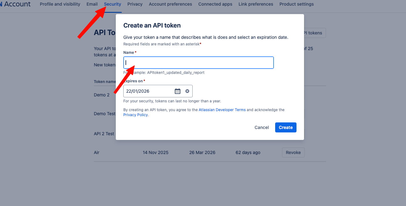 Important 2026 Update: Atlassian now requires time-limited API tokens. You can't create tokens that never expire anymore. Maximum duration varies by plan.