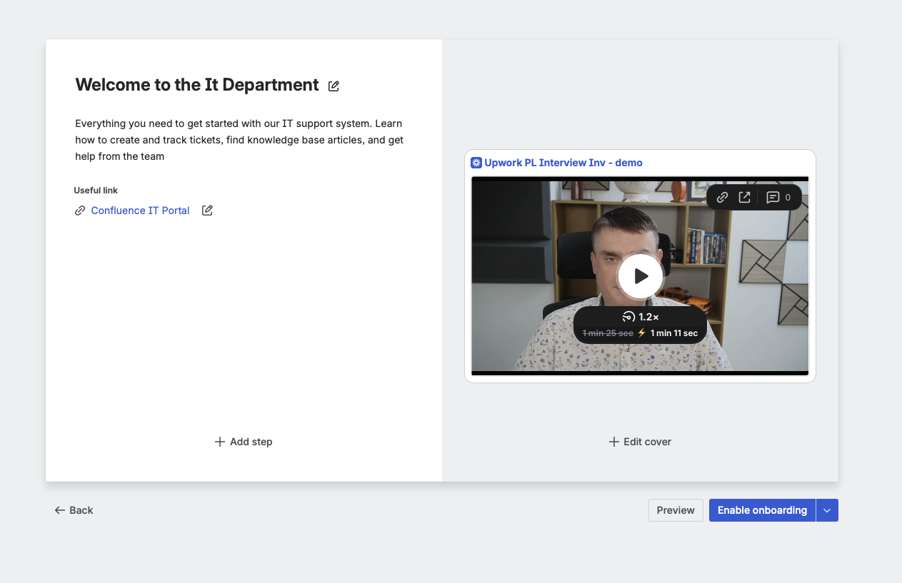 Here's the thing: you don't need all three steps. One step is absolutely fine. Don't over-engineer it. If all you need is a welcome message with a link to your team's Confluence space and a quick video walkthrough, that's a perfectly good onboarding experience.